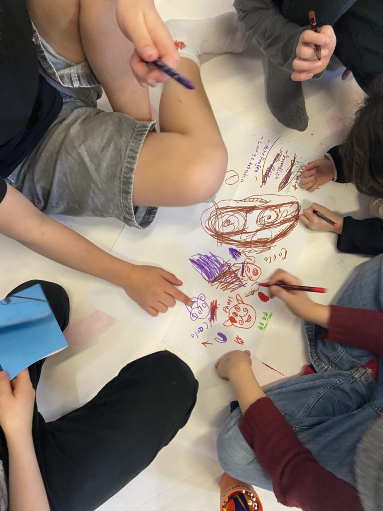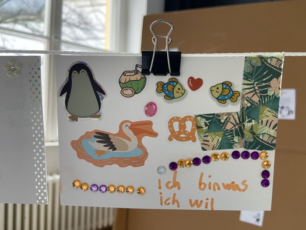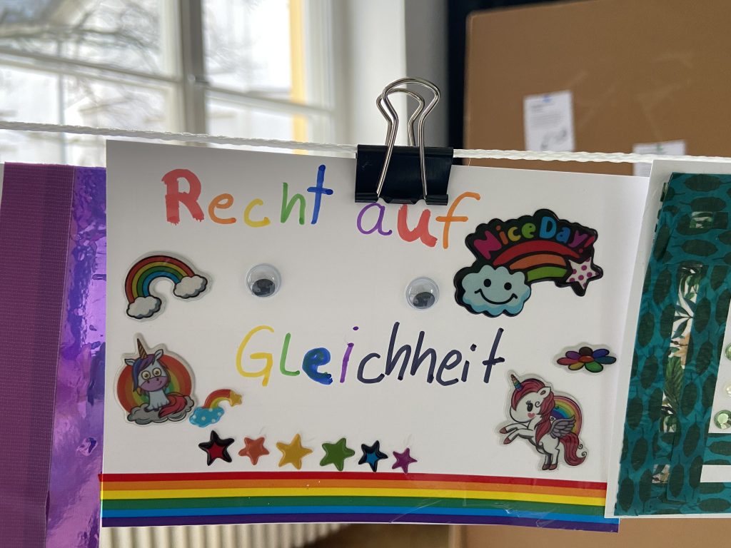 Mit Lea vom Netzwerk zur Umsetzung der UN- Kinderrechtskonvention National Coalition Deutschland wurde viel entdeckt und ausprobiert. Die Gruppe hat Kinderrechte auf einem Wimmelbild gefunden, Postkarten zu Kinderrechten gebastelt, ein Hörspiel über Kinderrechten gehört und viel diskutiert: